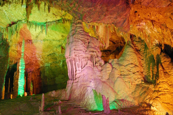 “天堂”精彩紛呈,美不勝收,,有大的景點32處。溶性碳酸鹽巖在漫長的歲月里,變幻出多姿百態(tài),豐韻萬千的眾多造型,為“天堂”造就了美妙絕倫的意境。“南天門”高聳入云,“仙女出浴”百媚千嬌,“御筆天書”維妙維肖,“凌霄殿”虛無縹緲,“玉樹瓊花”繁花似錦,“逍遙宮”如詩如畫,“瑤池”銀波蕩漾,“紫宵宮”三門雄關,“百鳥朝鳳”令人神往,“廣寒宮”寬闊空寂,……“天堂”面積5000多平方米,除了32處大景點,還有浩如星辰,不勝枚數(shù)的眾多小景點。它們一起構(gòu)成了“天堂”那峰回路轉(zhuǎn)、光怪陸離,既寬闊幽遠,又雄偉莊嚴,且瑰麗奇妙的無邊美景。