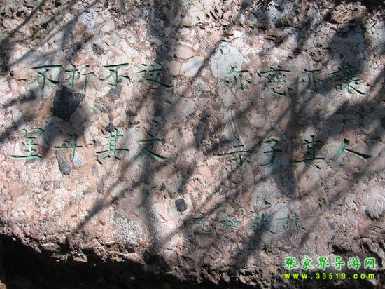 從古城的東門城樓外的虹橋前沿江下行3華里路程,到得聽濤山,從山道向右拾階而上,不遠處便能看見一塊石碑,上寫“沈從文墓地”5個遒勁大字。再不遠處置有一塊豎長的石碑,上面刻有畫家黃永玉為表叔沈從文題寫的碑文:“一個士兵不是戰(zhàn)死沙場,便是回到故鄉(xiāng)。”墓地建在一塊狹長的小草坪上,沒有墳冢,只樹有一塊6噸多重的天然五彩石,成為沈從文墓獨特的標志。石正面鐫刻的是沈從文富有哲學內涵的手跡:“照我思索,能理解我;照我思索,可認識人。”石背面是沈從文的姨妹、美國耶魯大學教授張充和撰書,沈從文侄女婿、中央美術學院著名雕塑家劉煥素教授鐫刻的挽聯(lián):“不折不從,星斗其文;亦慈亦讓,赤子其人。”其聯(lián)句尾四字:“從文讓人”透射出先生一生的高風亮德。沈從文墓地清幽靜謐,四周綠樹環(huán)抱,墓地上和四周的草坪上擺放著無數(shù)的野花和竹編的一些蝴蝶,這些都是前來膜拜的旅人們留下的。