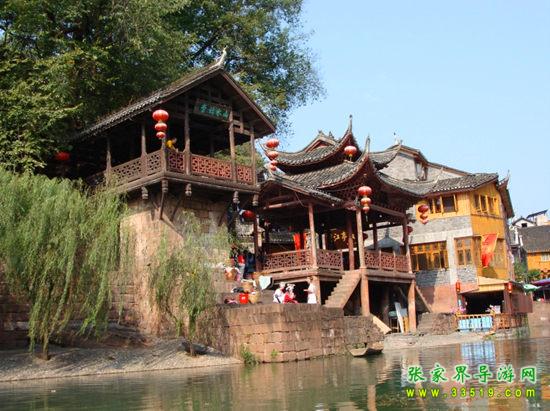 芙蓉鎮(zhèn)不僅是一個(gè)具有悠久歷史的千年古鎮(zhèn),也是融自然景色與古樸的民族風(fēng)情為一體的旅游勝地,又是猛洞河風(fēng)景區(qū)的門戶、一個(gè)尋幽訪古的最佳景點(diǎn)。四周是青山綠水,鎮(zhèn)區(qū)內(nèi)是曲折幽深的大街小巷,臨水依依的土家吊腳木樓以及青石板鋪就的五里長街,處處透析著淳厚古樸的土家族民風(fēng)民俗,讓游人至此贊不絕口,留連忘返。胡績(jī)偉先生游覽猛洞河和王村以后作詞贊道:“武陵山秀水幽幽,三峽落溪州。懸崖壁峭綠油油,悠悠蕩華舟。烹鮮魚,戲靈猴,龍洞神仙游,芙蓉古鎮(zhèn)吊腳樓,土家情意稠。”