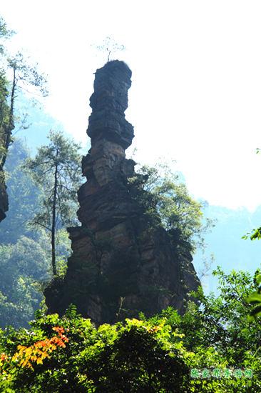 山谷中并排而立的三支山峰,有模有樣,有人叫他們“師徒取經(jīng)”,說那是唐僧、孫悟空、沙和尚三人的“合影”??催^《西游記》的朋友,可能對這片風(fēng)景有似曾相識的感覺,這兒曾是中央電視臺拍攝《西游記》的外景地。有些客人經(jīng)常問,重要人物豬八戒先生怎么沒有趕上這個“合影”呢?他忙里偷閑,在后面背媳婦去了(我們剛才不是看過“豬八戒背媳婦”那個景點(diǎn)嗎?)不小心誤了時辰。如此看來,愛情和事業(yè)有時難免會有點(diǎn)矛盾。