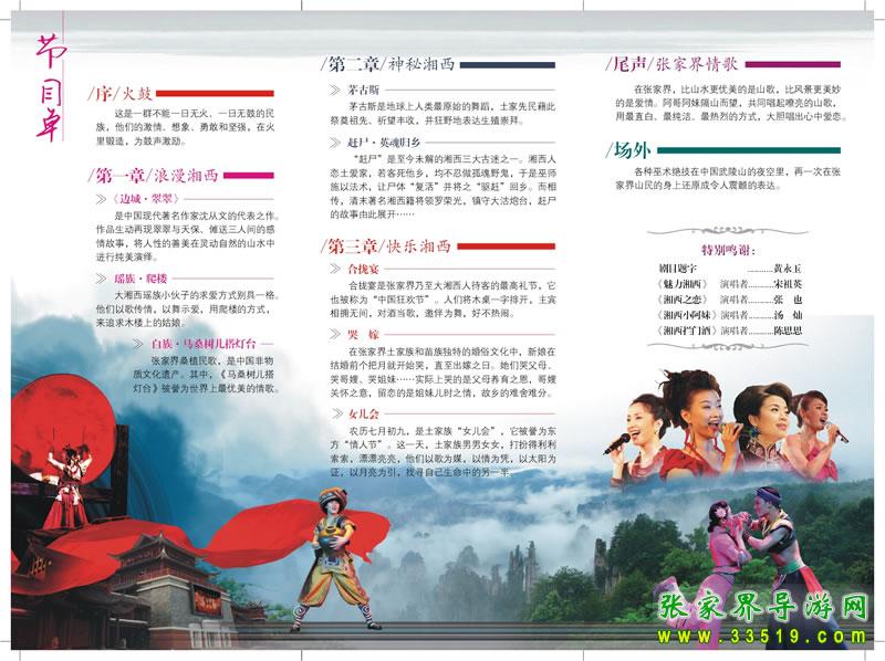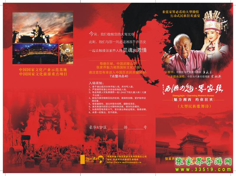 “張家界·魅力湘西”,胸懷創(chuàng)意,特立獨行,用十年時間,打造出中國旅游景區(qū)規(guī)模最大的綜合性演藝基地。“張家界·魅力湘西”初創(chuàng)于2000年,經(jīng)過十年十年如一日的潛心發(fā)展,從最開始的200人小劇場,到如今成為投資1.6億、2600座的張家界魅力湘西國際文化廣場,并獲得“國家文化產(chǎn)業(yè)示范基地”、“國家文化旅游重點項目”、“湖南省文化產(chǎn)業(yè)優(yōu)秀單位”稱號,被業(yè)內(nèi)專家譽為“中國三大旅游名秀之一”。
