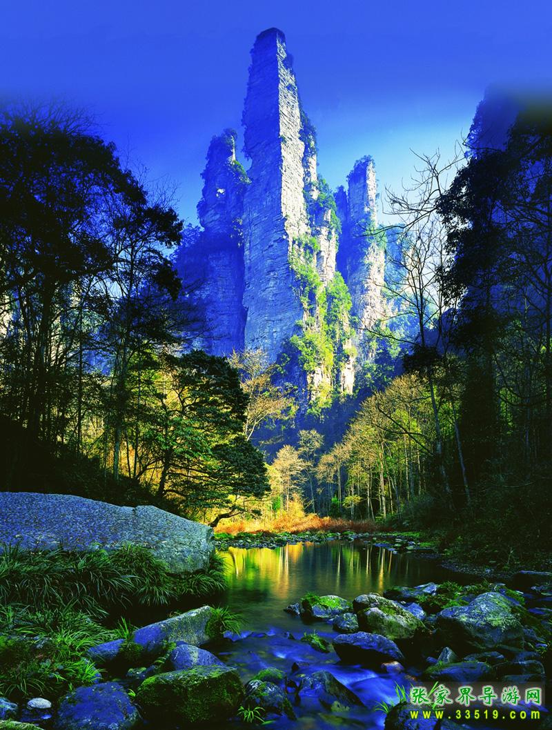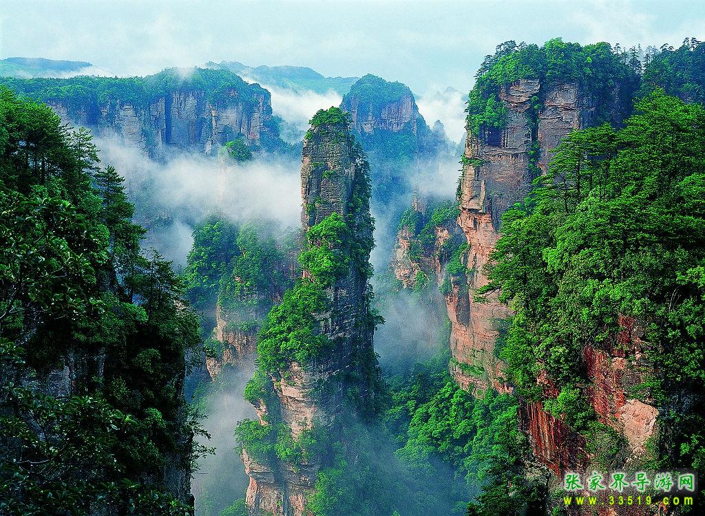 張家界國(guó)家森林公園位于湖南省西北部張家界市境內(nèi),是1982年由國(guó)務(wù)院委托國(guó)家計(jì)委批準(zhǔn)成立的中國(guó)第一個(gè)國(guó)家森林公園,1992年12月因奇特的石英砂巖大峰林被聯(lián)合國(guó)列入《世界自然遺產(chǎn)名錄》,2004年2月被列入世界地質(zhì)公園。公園自然風(fēng)光以峰稱奇、以谷顯幽、以林見(jiàn)秀。其間有奇峰3000多座,這些石峰如人如獸、如器如物,形象逼真,氣勢(shì)壯觀。峰間峽谷,溪流潺潺,濃蔭蔽日。有“三千奇峰,八百秀水”之美稱。公園不僅自然風(fēng)光壯美絕倫,而且森林植物和野生動(dòng)物資源極為豐富,森林覆蓋率達(dá)98%,是一座巨大的生物寶庫(kù)和天然氧吧,被稱為“自然博物館和天然植物園”。草木禽獸與奇山異水,同生共榮,形成完美的自然生態(tài)系統(tǒng)。