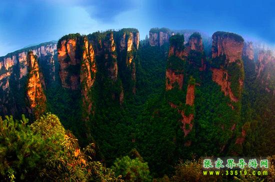 袁家界位于張家界國(guó)家森林公園北面,位居張家界武陵源風(fēng)景名勝區(qū)的核心;乘坐世界第一梯—百龍?zhí)焯輧H需要1分58秒;主要景區(qū)有天下第一橋、阿凡達(dá)外景取景地"哈利路亞懸浮山"乾坤柱、后花園、迷魂臺(tái)、羊寨、中韓友誼亭、天懸白練等景點(diǎn);站在袁家界景區(qū)的觀景臺(tái)上,三千奇峰盡收眼底,雄險(xiǎn)秀野,神態(tài)各異。峽谷深處,千百根石峰石柱奇?zhèn)ネ涣?。峻峭之石,如英武將帥;嵯峨之峰,似勇猛壯士。有聲有色,若靜若動(dòng),形象逼真,呼之欲出。