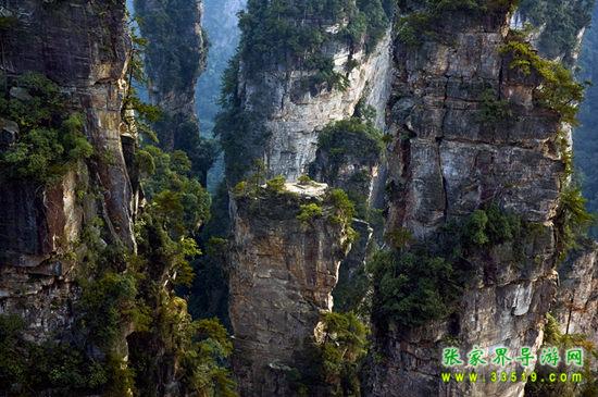 由于它地勢(shì)高,東南西三面都可觀景,透視線長,畫面寬闊,景觀層次多。在天子山的天子峰或七星山上居高臨下,俯瞰腳下成千的感受。天子山山體中部高,四周低,似一座巨型寶塔拔地而起。各類新發(fā)育的造型奇特的地貌,多集中天子山山腰, 如雄偉的瀑布、奇險(xiǎn)的仙 人橋、巖門、溶洞,密集而陡峭的峰林石柱等,又使游人的獵奇心得到最大的滿足 。