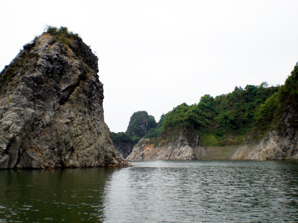 湖南省慈利縣趙家埡水庫(kù)始建于1972年,是一座以抽水蓄能發(fā)電為主,兼具蓄洪防洪、抗旱灌溉、營(yíng)林旅游、水產(chǎn)養(yǎng)殖等多功能于一體的中型水利水電骨干工程,水庫(kù)本身集雨面積33.5km2,外引集雨面積24Km2。水庫(kù)樞紐大壩為粘土斜墻堆石壩,壩底高程為500m,壩高46m,由于水庫(kù)屬封堵天然溶洞而建,大壩潛于水下,趙家埡水庫(kù)因此被稱為我國(guó)第一座“無(wú)壩”水庫(kù)。