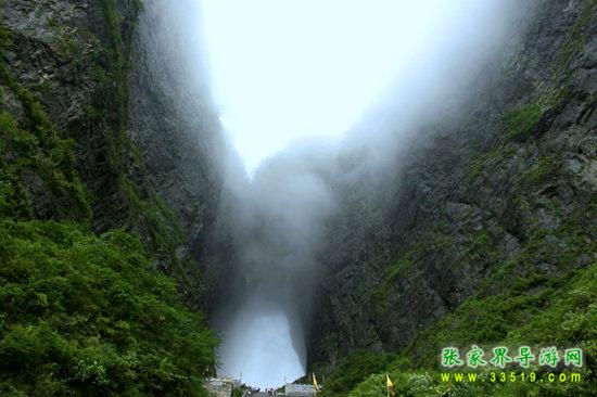 在古老的中國大地上,有一個(gè)人間通往仙界桃源的大山,武陵山脈之魂——天門山。您只要從天門山腳登上九百九十九級(jí)石階梯,就會(huì)到達(dá)通往仙界的大門——天門洞。碩大的門洞足夠現(xiàn)代人駕駛飛機(jī)穿越而過,是世界上最高的天然溶洞,該天門洞形成的時(shí)間比唐僧取經(jīng)時(shí)收取的由石頭爆出的大徒弟孫悟空還早500余年(公元263年溶洞形成)。它是天門山中一塊大石塊由于吸聚天地之靈氣噴溥洞開而成。從此,凡人間偉大人物仙逝,該天門山上不管是晴空萬里還是滿天星斗,都瞬間電閃雷鳴,風(fēng)雨交加,猶如天門洞落淚,傾盆而下……淚水沿著絕壁山崖瀑布而瀉,遠(yuǎn)遠(yuǎn)望去,似天上銀河下九洲。這現(xiàn)象至今仍無法開解!