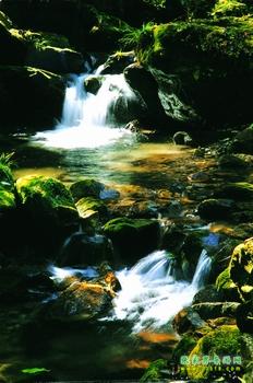 為沙刀溝第一景。一塊崩塌的巨石橫臥溪中。石的一端擱于右岸,供成一孔。溪水穿孔而過,發(fā)出叮叮咚咚的響聲,在溪內(nèi)沖成一個1米多深的潭。潭水清澈如鏡,潭底紅白砂石光潔晶瑩,魚、蛙時而嬉游其中。潭兩邊石峰高聳環(huán)峙,闊葉林、灌木叢茂密常青,峰麓遍生苔蘚,如鋪綠毯。山峰、碧空倒映潭底,水中掠過縷縷白云。潭右上方有一高約50米、直徑約5米的石柱立于路旁,綠葉扶疏,秀麗挺拔,與清心潭陪襯成奇特佳境。立潭觀景,塵念俱消。