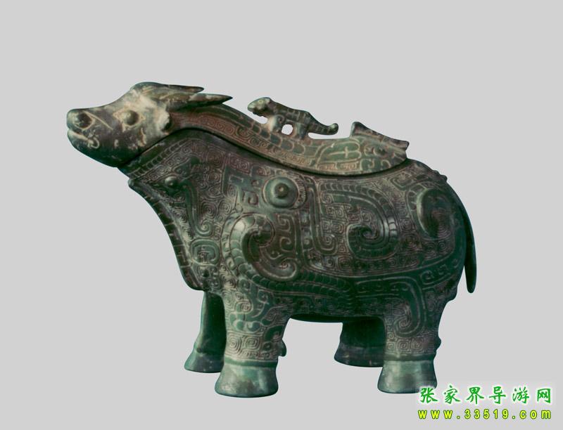 展出有商周時期至明清時期的各類文物100余件,其中包括:禮器、兵器、量器以及古人在日常生活中所使用的各類生活器具,是研究和了解衡陽先民在這塊土地上繁衍生息的最生動的教材;也是研究當(dāng)時衡陽處于楚越兩大文化相互生存和融合的最好的實(shí)物資料。如國寶動物紋青銅提梁卣、越式鼎、楚式青銅劍等等。在180平方米的展室中陳列了青銅精品90余件。其中以春秋動物紋提梁卣最具魅力。與它相媲美的商代青銅牛尊,工藝之精湛,美侖美奐。