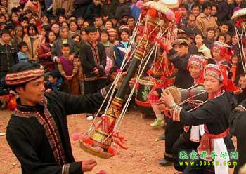 仗鼓舞是白族的一種獨(dú)特舞蹈,尤其是張家界天子山一帶的白族人,大都愛(ài)跳仗鼓舞。逢年過(guò)節(jié)、游神、趕會(huì),山山寨寨都要舉行歡樂(lè)的“跳舞節(jié)”。仗鼓舞根據(jù)人數(shù)多少,分為4人舞、8人舞、32人舞等多種形式,主要道具是仗鼓,鼓長(zhǎng)1.2米,兩頭粗,中間細(xì),因兩頭緊繃牛皮,敲擊時(shí)便“嘭嘭”作響。跳舞前須祭祀祖先,然后由三位德高望重的老者先入場(chǎng)引導(dǎo)圍圈歡跳,擺呵、蹬呵、拍呵,繞著場(chǎng)子一圈又一圈地跳,鼓聲陣陣,還有嗩吶、笛子等樂(lè)器伴奏,舞姿靈活多變,古樸大方,驚險(xiǎn)敏捷,民族色彩濃郁。