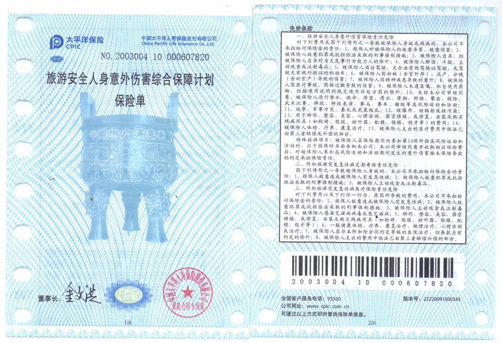 我們?nèi)匀粡?qiáng)烈建議游客自行購(gòu)買從家里出發(fā)到回到家時(shí)的全程旅游意外保險(xiǎn)。