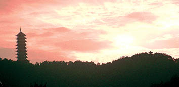 高閣對琴堂,淡抹煙光,年來風物換滄桑,翹首飛鴻何處落,一片斜陽。