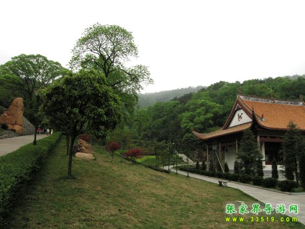 轉(zhuǎn)到祠堂后邊,有一短坡,草色蒼綠,雜有香楓,高不及數(shù)尺。右有一潭,約五尺圓盤,潭水清澈,右岸樟樹兩棵,挺撥林立,樹旁瀑布寬約兩尺,高約兩人,水沫飛濺,水擊聲轟轟,如約大壩泄洪。潭之左邊,有一石梯,拾級(jí)而上,就見岳麓山上煙雨蒙蒙,那濃濃的霧水,就像一個(gè)打扮得漂漂亮亮的姑娘披上潔白的婚紗——更加?jì)趁膭?dòng)人。